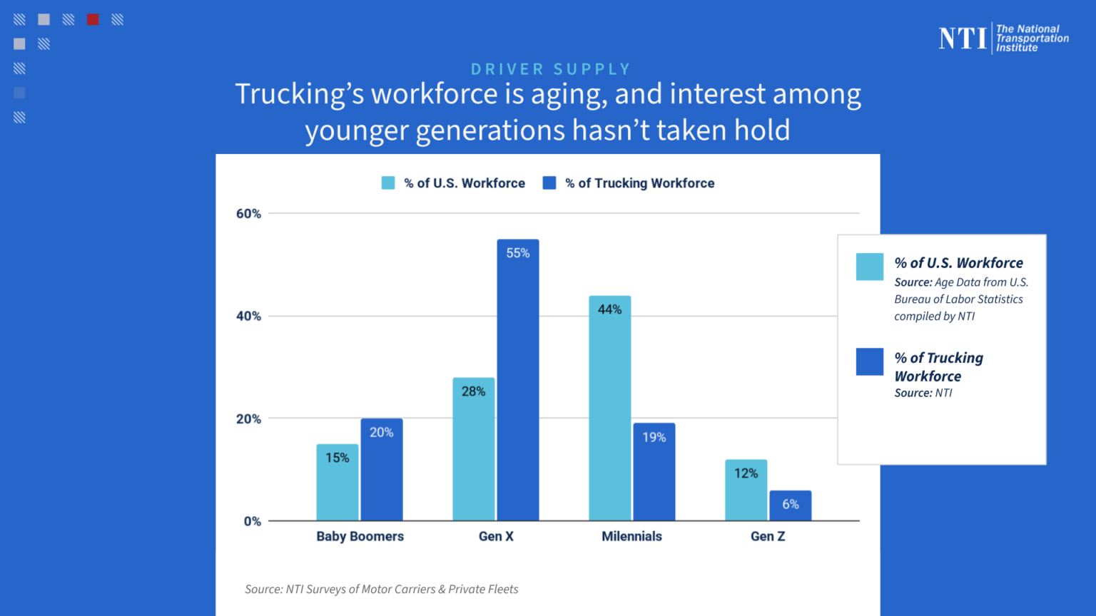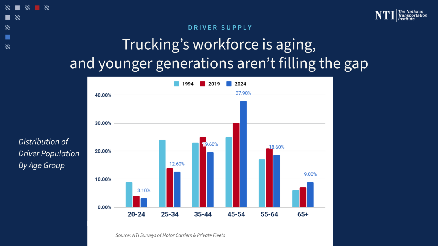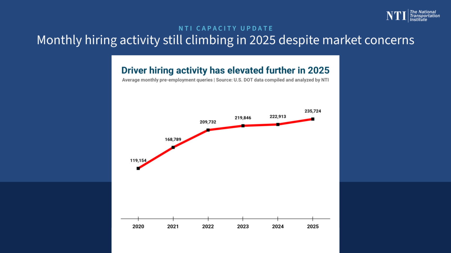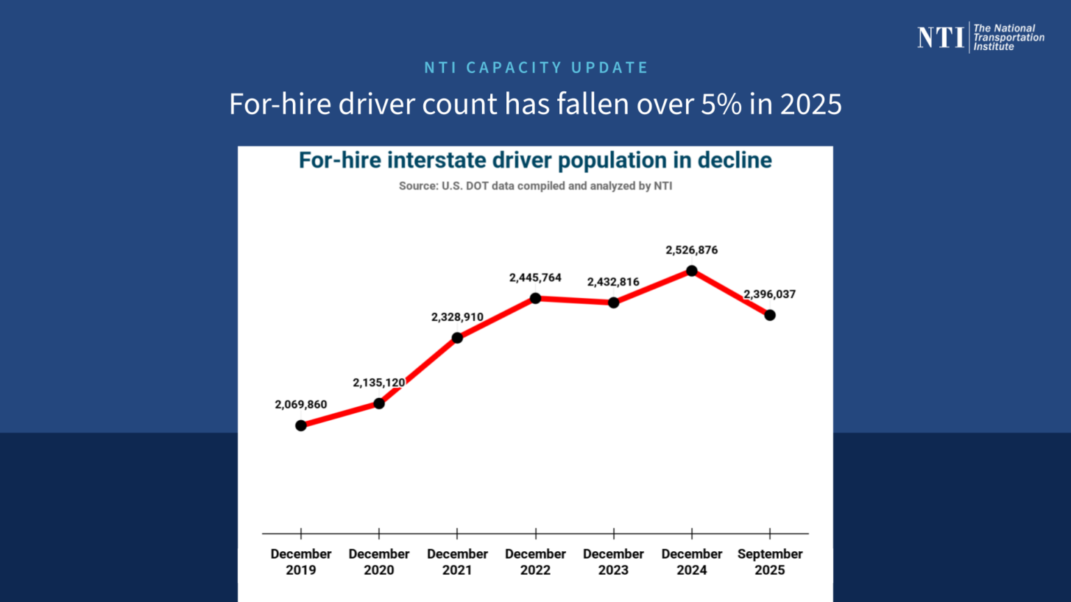 This is a point NTI has been making since the beginning of the current freight recession in late 2022. Because capacity has been in excess and drivers have been plentiful, the industry has removed its emphasis on attracting newcomers and backfilling drivers who leave.
