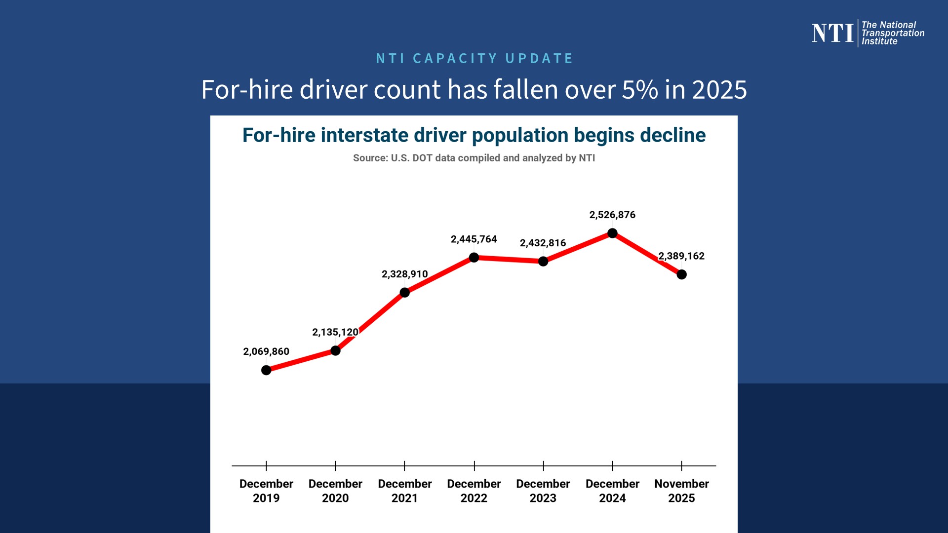 In this article published in HDT in August, we outlined the state of the freight market and how it’s influencing driver wages, as well as the factors that could lead to increased freight rates, or those that could continue to beset them. Also, stay tuned for our annual Driver Market Forecast for 2026, which will be published in February and further outline NTI’s outlook for 2026 and our forecast for driver wage changes.